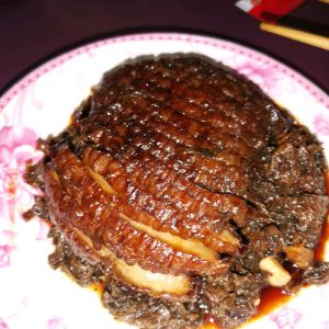 炸好后切片,底下铺梅菜干,上面放肉,大火蒸半小时,看个人喜好,喜欢烂就蒸就一点!