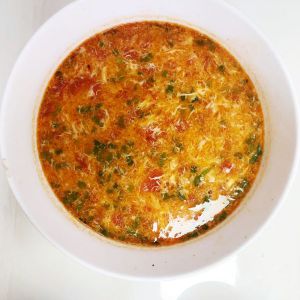 起锅撒葱花 (此菜主要吃番茄的酸味和鸡蛋的鲜味 汤和菜一起喝)【番茄酸味如果不够可以提前买酸味番茄酱 在第一步加水之前加入】