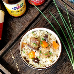米饭煮好后趁热加入葱花,搅拌均匀。