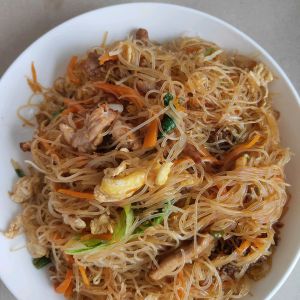 忘记拍照片了,先把瘦肉抄下盛出接着炒鸡蛋。在把胡萝卜豆芽一起炒两下,接着下粉丝翻炒。两分钟后加肉盐,老抽。味极鲜。最后一步出锅!