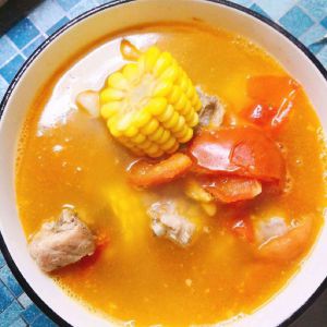 倒入玉米,手撕番茄,我觉得这样汁儿保存得更完整一些,最好还可以把番茄炒一下倒入砂锅内,这样更能熬出味一些,中小火半个小时,放入盐即可,味道就很鲜美。