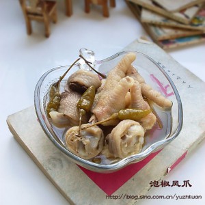 将瓶子内的泡椒全部倒入到保鲜盒中,成泡椒水;煮好的鸡爪放入保鲜盒里,(泡椒要足够多,如果不够咸的话依照个人的口味再加适量盐),盖上保鲜盒盖,上下摇晃几次,摇匀。
