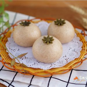 在馒头面胚抹点薄水,将花朵点缀在面胚上。全部放入抹了油的蒸架上,隔开一定的距离(排太密会影响美观)。进行二次发酵,盖上锅盖静置(夏天15-20分钟,冬天:锅里放温水,静置30分钟),手指轻按慢慢回弹就可以。