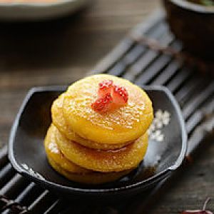平底锅放少许油,将南瓜饼煎至两面金黄即可,食用时淋上蜂蜜。