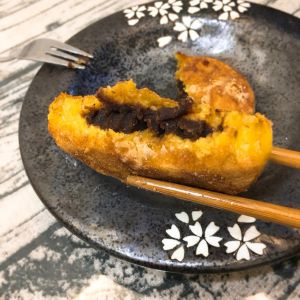 一口咬开,清新的南瓜和桂花香气飘散开来…甜度比较低,但配着豆沙就刚刚好,好吃哒!