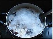 烧一锅开水,蘑菇和香菇先下到开水中抄熟,听说蘑菇和香菇在种植的过程中需要用到非常多的BIANBIAN,实在怕怕,洗了三遍后还用开水抄,抄制的过程中,能看到非常多的泡沫,同学们能想象有多脏了吧??