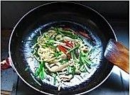 快熟时倒入韭菜,用盐和鸡精调味,翻炒一下即可出锅。