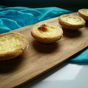 过滤好的蛋挞液倒入蛋挞皮中,七、八分满即可。