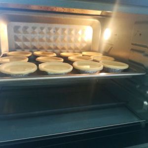 将过滤好的蛋液倒入蛋挞皮中,8分满