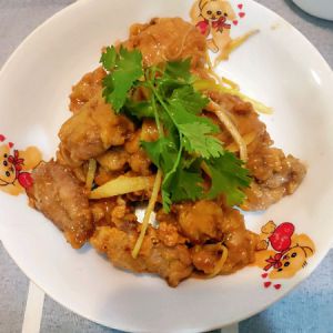 起锅烧油,一点点就行,放入葱丝和姜丝,胡萝卜丝,我没放,应该放一些比较好看倒入糖醋汁,起泡后倒入肉片,关火翻炒一下,即可出锅
