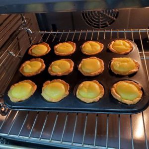 把面团分成15克,用手捏成圆型底部薄(饼底部烤出来就不会太湿)我这个是12连小模具!不马上吃要放在冰箱,常温放饼皮会塌下来!