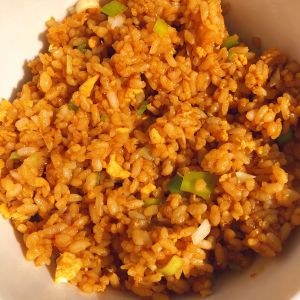 米饭中加入1汤勺生抽,适量老抽,1勺糖,1g鸡精,一点点盐