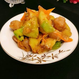 放辣椒胡萝卜,再放提前炸好的肉段,再放调好的料汁(生抽老抽蚝油白醋糖香油)和水淀粉