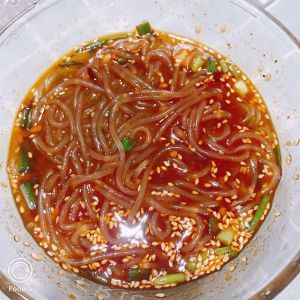 最后下去糖,盐,陈醋,生抽,耗油,葱花,芝麻搅拌均匀(具体放多少,按个人口味吧)