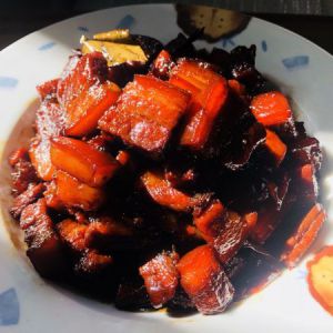 锅里不用放油 直接放肉块翻炒至出油 颜色发金黄