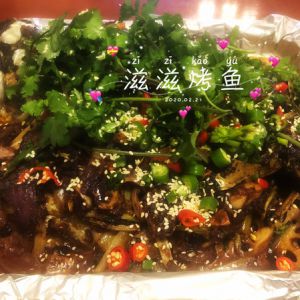 放入烤鱼酱,孜然,少许盐,鸡精,香油,水,小火煮一下。