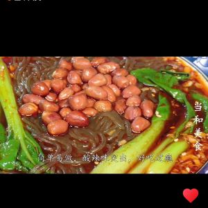 3.碗中放一勺秘制辣椒油,蒜末,盐,鸡精,生抽,白糖,香菜,陈醋,小米辣,葱花,花椒,加开水稍搅拌,成人。烧开水,下油菜,煮熟,捞出备用。开水下红薯粉,烧开即可捞出,过冷水,盛入碗中,加原汤,加各种配菜,搅拌,加花生米,撒油菜,即可享受美味了。