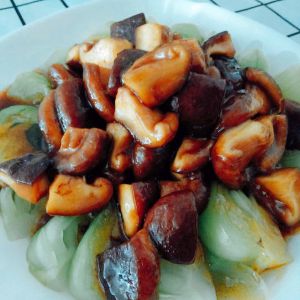 锅中热油下香菇块儿翻炒,加入少量生抽还有蚝油,炒熟即可