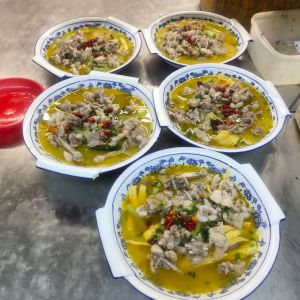 热锅下菜籽油(量一定要多喔,差不多平时炒菜的2~3倍),下黄灯笼辣椒酱和切碎的泡椒,煸炒出香味 ➕水(水量差不多家里饭碗2碗)不宜多加 然后下鸡精、味精、白糖、不加盐巴~不加盐巴~不加盐巴,这时候就等着它煮开 煮开后不要着急让它多煮一会,你会发现汤越煮越金黄那就对了,要是不够亮黄就再➕菜籽油