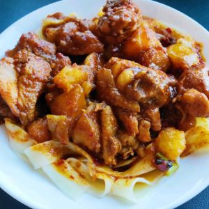 大盘鸡铺到面上,拌匀就可以吃啦~