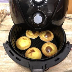 空气炸锅先用180度预热3-5分钟,然后在蛋挞里倒入买来的蛋挞夜,每个八分满就啦。