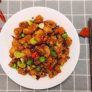鸡丁加入料酒,盐,生抽,玉米淀粉,抓匀放到冰箱冷藏两个小时
