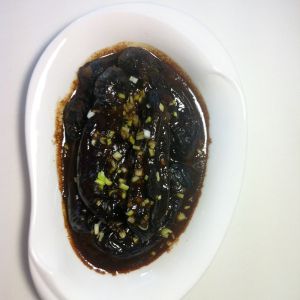 锅加热,油少许,放入茄子,关小火,茄子煎至8成熟(注:用筷子按压茄子,茄子柔软)