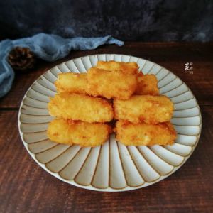 锅里放油,油温7成热时,下入奶冻,炸至表面金黄捞出控油即可