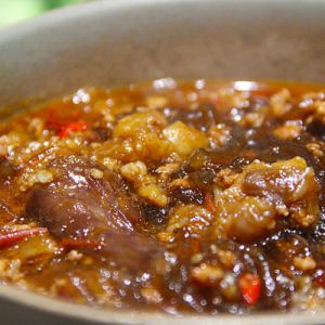 翻炒两下放入1勺生抽、半勺老抽、半勺盐、半勺白糖、1勺豆瓣酱。