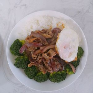 摆上煎好的鸡蛋,好吃的肥牛饭,做好了
