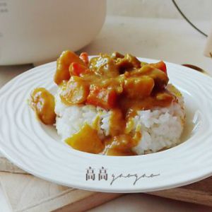 装一盘米饭,拌上咖喱土豆牛肉,好吃哟。