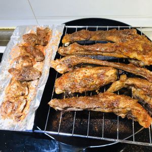烤熟后,将羊排拿出、把脂肪油控掉,涂抹柠檬汁 ,孜然粉 ,蜂蜜 ,辣椒粉,继续放入烤炉 加工10分钟即可。温度保持在210度左右。(其实涂抹材料无需太精确,平时经验涂抹均匀即可。