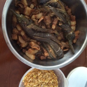 杏鲍菇切片下锅一起炖炖,葱姜放入