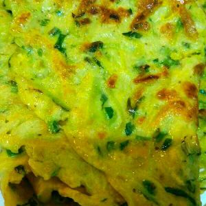 西葫芦切丝,放入少许的盐,打三个鸡蛋,搅拌!