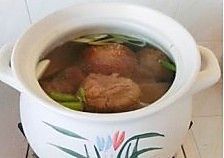 放入泡发好的猴头菇,大火烧开,转小火煲至羊排八成熟