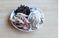 锅中放水,加入杏鲍菇、蟹味菇、香菇、黑木耳焯水,捞出沥干水分待用