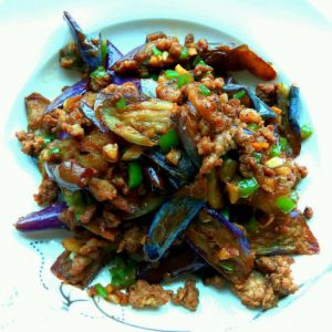 放入炸好的茄子,放入少许盐,生抽翻炒几下,最后放入少许鸡精翻炒几下,出锅