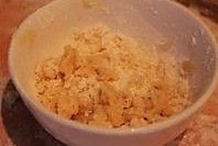另取小半碗面粉加油活成油酥,这个不成形也没关系。可以加植物油也可以加猪油,都行,当然用猪油活的更香。