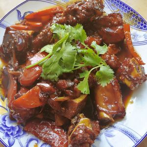 汤汁浓缩后,香喷喷的糖醋排骨就出锅了。