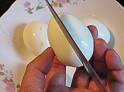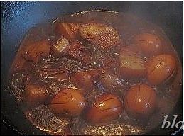 鸡蛋在另一个锅里煮熟后放入冷水里再拿出剥壳;在鸡蛋上竖着划几刀后放入锅中;