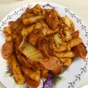 注意这里因为我没准备辣酱,所以只用了辣白菜,有酱的可以放。