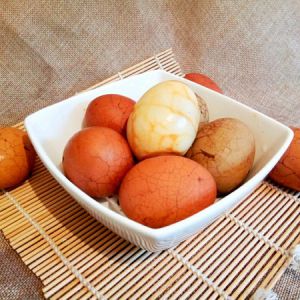 鸡蛋,鸭蛋,一个个敲碎一点,方便入味,倒入刚才泡好的香料水,再加生抽,老抽,盐,十三香再加清水,清水要没过鸡蛋,大火煮开,中火慢慢炖30分钟,