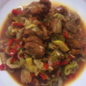 这道菜。排骨是甜的。正宗糖醋排骨的口感。而配料却是酸辣可口可以下饭的滋味。排骨不吵糖色是因为这样的排骨不会更甜。入色更均匀。