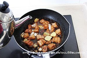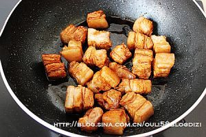 等到肥油大多靠出来,肉微微发黄时,把锅里的油倒出来