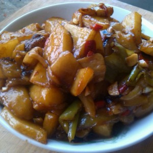 好了,美味地三鲜出锅。嗯,很香啊,试一下吧。
