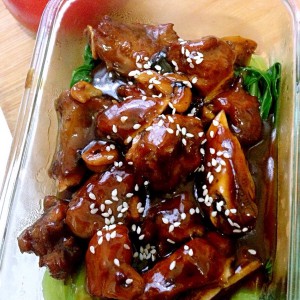 锅里烧热,放油,放蒜煸炒,倒入小排,炒一会,倒入一勺料酒三勺酱油三勺白糖四勺醋再加入没过排骨的水。小火烧十五分钟。