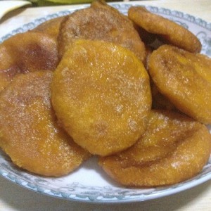 把南瓜蒸熟,放凉,倒入糯米饭,和成面团
