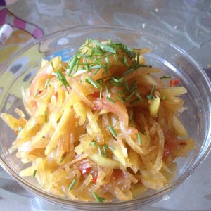 水滚后 放进去过一下(嫩的西瓜可以不过水 直接拌)