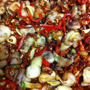 最后放入干辣椒,鸡精,翻炒片刻便可出锅!