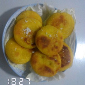 成型的饼放入锅中煎炸(油熟后调制小火),待炸后捞出,就做好了~~
